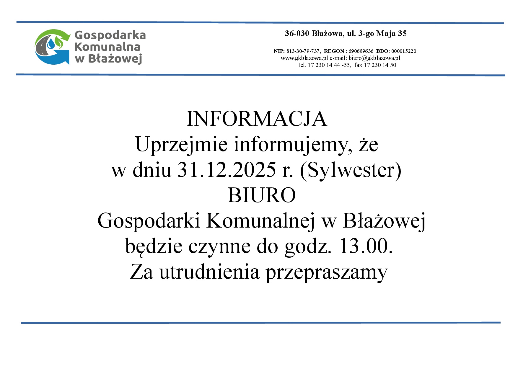 Referat Gospodarki Komunalnej i Mieszkaniowej w Prezydium Miejskiej Rady Narodowej został powołany już w 1950 roku. Zatrudniono 4 – osobową grupę zamiataczy ulic. W roku 1968 Rada Miasta powołała odrębny zakład do wykonywania robót remontowo budowlanych budynków mieszkalnych, ulic, dróg i urządzeń komunalnych. Z dniem 1 stycznia 1971 r. Przy Powiatowej Radzie Narodowej w Rzeszowie powołano Powiatowy Zakład Gospodarki Komunalnej i Mieszkaniowej w Błażowej. Swym terenem działania obejmował on miasta Błażowa, Tyczyn i Głogów Małopolski. W zakresie działania tejże jednostki były także zagadnienia komunalne i remontowo budowlane. W momencie reorganizacji administracyjnej kraju w roku 1975 po likwidacji Powiatowych Rad Narodowych powołano Miejskie Przedsiębiorstwo Gospodarki Komunalnej i Mieszkaniowej w Łańcucie z oddziałem w Błażowej i Głogowie Małopolskim. Od lutego 1981 roku zostało utworzone samodzielne Przedsiębiorstwo Gospodarki Komunalnej i Mieszkaniowej w Błażowej, do obsługi także miasta Tyczyna.